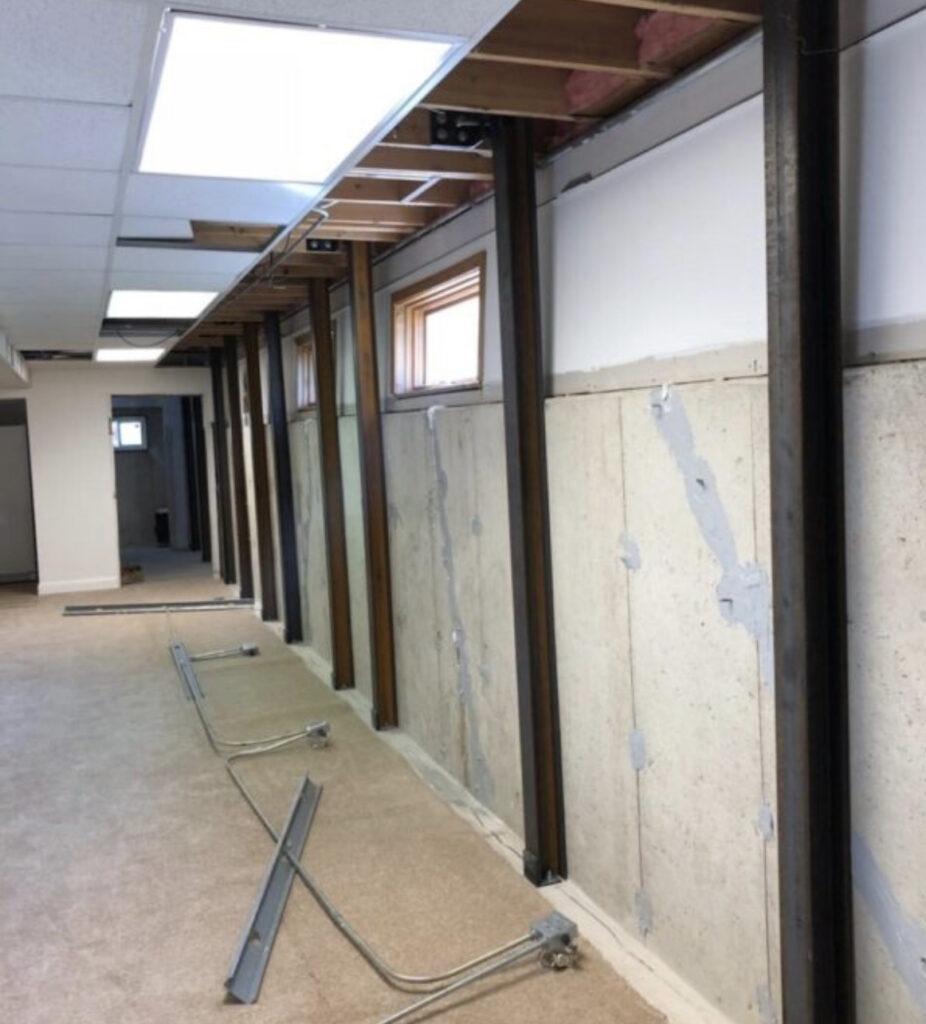 These beams will provide adequate support to basement walls that are collapsing pressures due to poor construction and saturated soils.