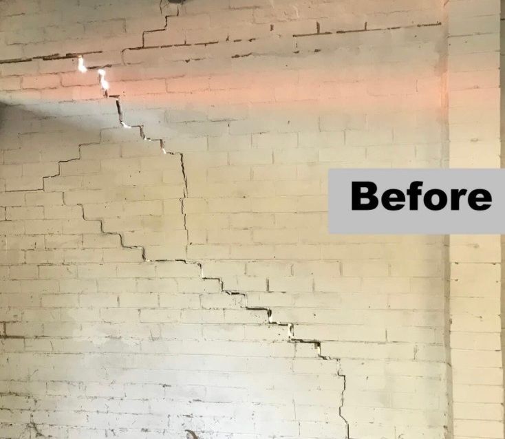 If movement is caught early, using Carbon Fiber Straps is a great remedy at lower cost than Wall Supports and much more cost affective than Tie-Backs.