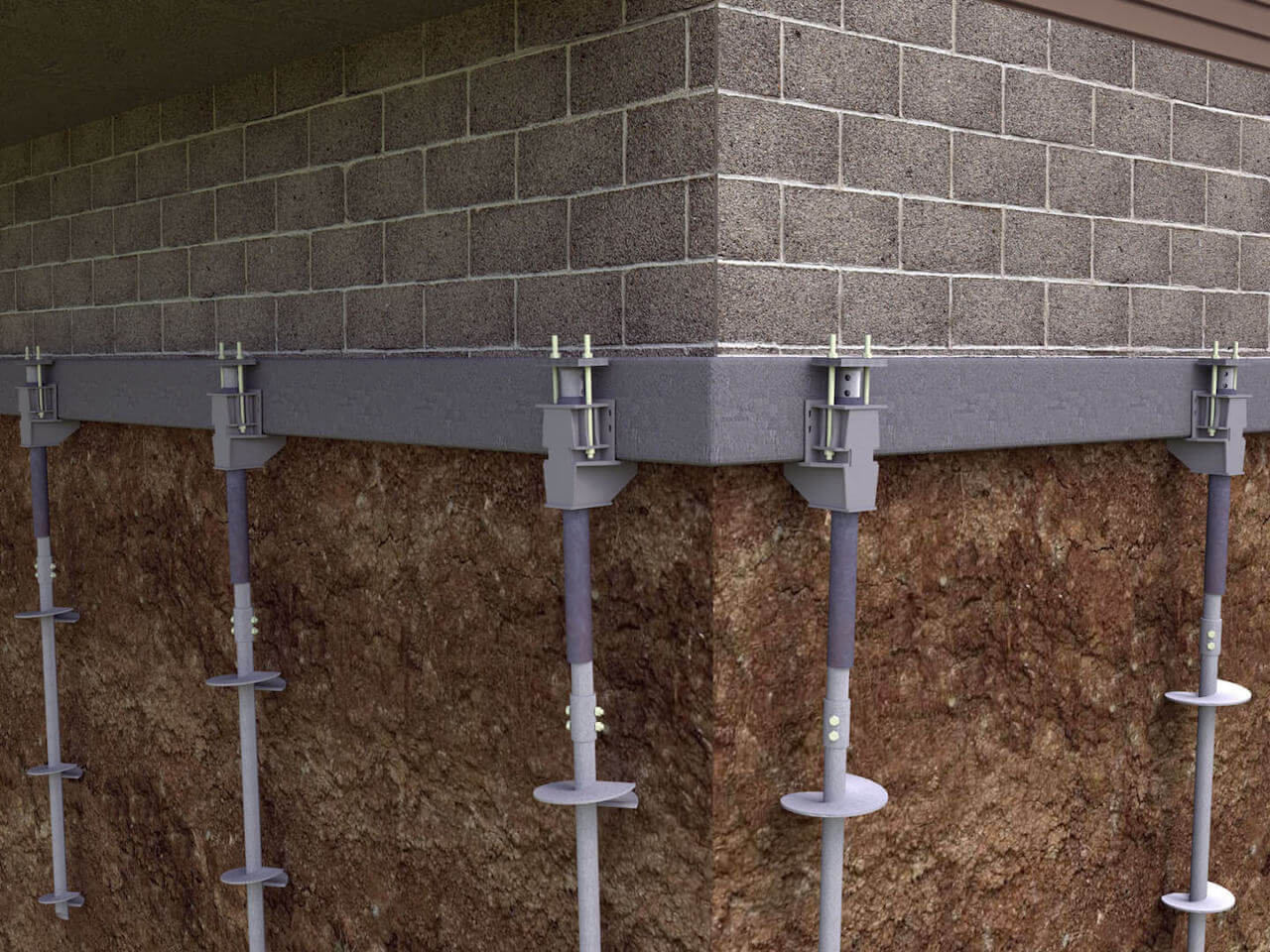 Helical piers dig down deep into load-bearing soils which helps to permanently stabilize the home from any settlement in the future.